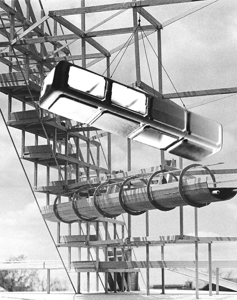 Harvard Grad School of Design extended collaborative team study of 3D Motion Grid City concept. Urban Density Guage. (D.Hafner, W.Mason, 1967)
