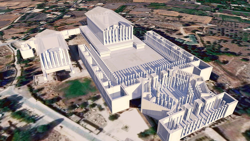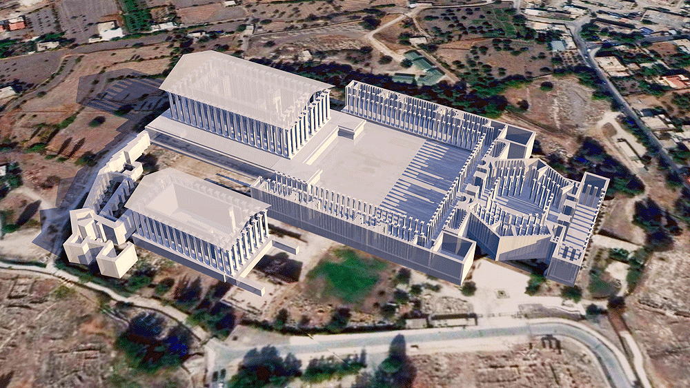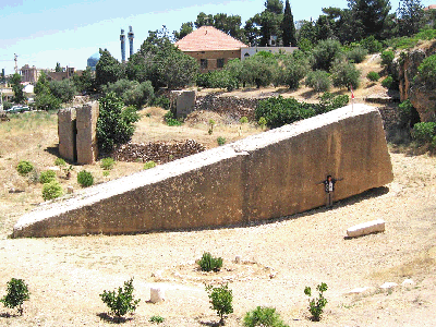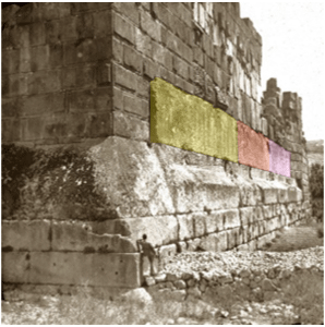 Upper left: "The Stone of the Pregnant Woman (Arabic: Hajar el Hibla), a stone estimated at 100 tons, was misteriously not removed from the Heliopolis quarry. Upper right: Baalbek Temple of Jupiter NE corner (photo by Frauberger 1892/Goodyear Archive 051 Br, Brooklyn Museum). The photo shows The Trilithon with yellow, red, and blue overlays for emphasis; note the human standing at the corner to comprehend the vast scale of the stones. Largest temple built by Rome in Heliopolis (now called Baalbek) dedicated to the god, Jupiter, in The Lebanon c. 50 C.E.. The unusual platform upon which the Temple is built, containing three of the world's largest-known cut stones, "The Trilithon", consisting of three stones, each 70 feet long, 14 feet high, 10 feet thick, and each weighing c. 800 tons. Some archaeologists believe these stones and the podium of which they are a part are from a much older civilization. and that Roma did not have the technology to produce and move such massive stones. Why the Romans decided to build the largest temple to Jupiter over The Trilithon, and in distant Lebanon, remains a mystery; whatever the Trilithon represents (from the past?) was obviously deeply revered by the Roman civilization. Elevation is c.1157 meters (3795.93 feet) above sea level. Materials of Trilithon: Stone. Data or this CG model: |
