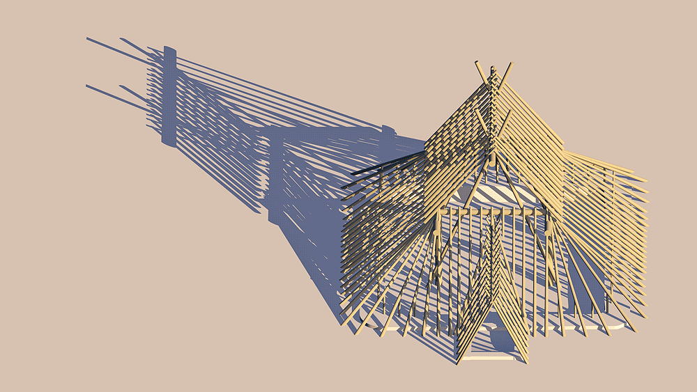 Materials: Wood roof structure over earthen depression; thatch roof.