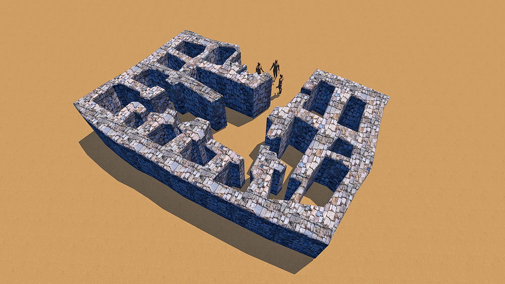 Basta This PPNB (Pre-Pottery Neolithic B) settlement was built 7000 BCE. ,located 36 km. (22 mi.) southeast of Petra, Jordan. It is one of the earliest known settled populations who grew crops and domesticated livestock. Dwellings were single family homes. Researchers found the earliest evidence of social endogamy. The dead were buried underneath the dwellings, to better remember ancestors. Elevation above sea level is 1,460 m. (4,790 ft) Construction: Limestone walls, and wooden floors. Sources of data for CG model: