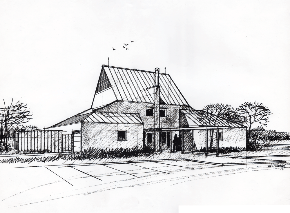 Billman Medical Clinic, Hutchinson, Minnesota, 1977 Design of the Billman Clinic incorporates a large active solar hot water array on two roof slopes. |
