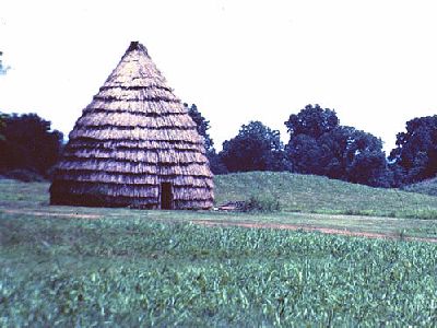 Above left: Grasshouse reconstruction at Caddo Mounds State Historic Site, located in Cherokee County, west of Nacogdoches, TX; Above center: Wichita grass house on display at Indian City, Anadarko, Oklahoma (Wichita culture--distinct from Caddo culture--grass house has doors facing east and west, while Caddo typically has one east-facing door), Photograph by Dee Ann Story; Above right: Caddo elder, Phil Cross, pulling poles together in grasshouse construction ceremony. Source: Stephen F. Austin State University. Caddo Culture Ancestral House (Hasinai), 800 C.E. to 1700 C.E., Louisiana, Arkansas, Oklahoma, Kansas, and East Texas. Elevation varies. Materials: wood structure and grass thatch. Data for CG model: 2. https://www.texasbeyondhistory.net/kids/caddo/houses.html 3, https://www.sfasu.edu/heritagecenter/9614.asp |