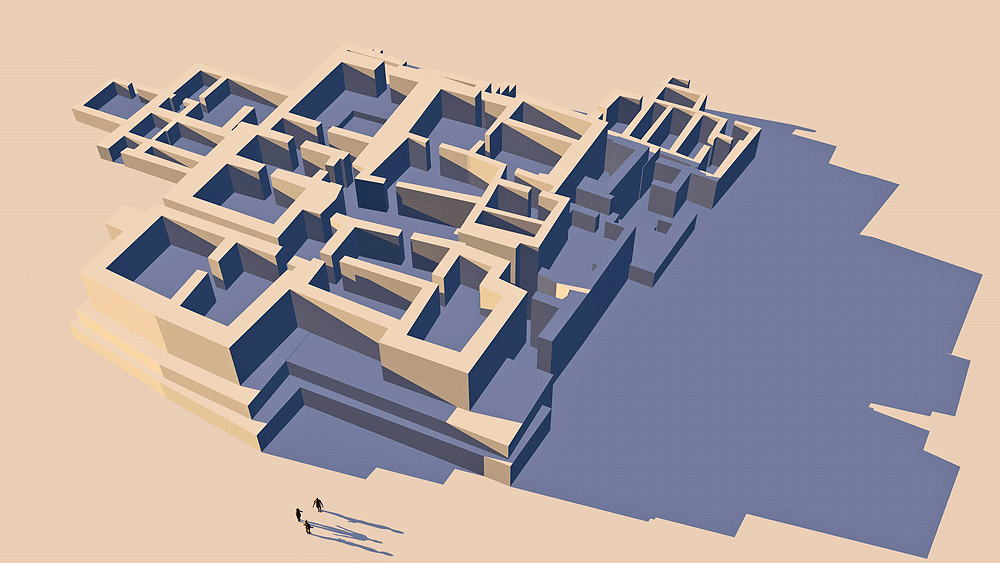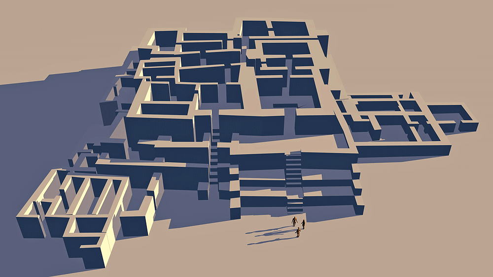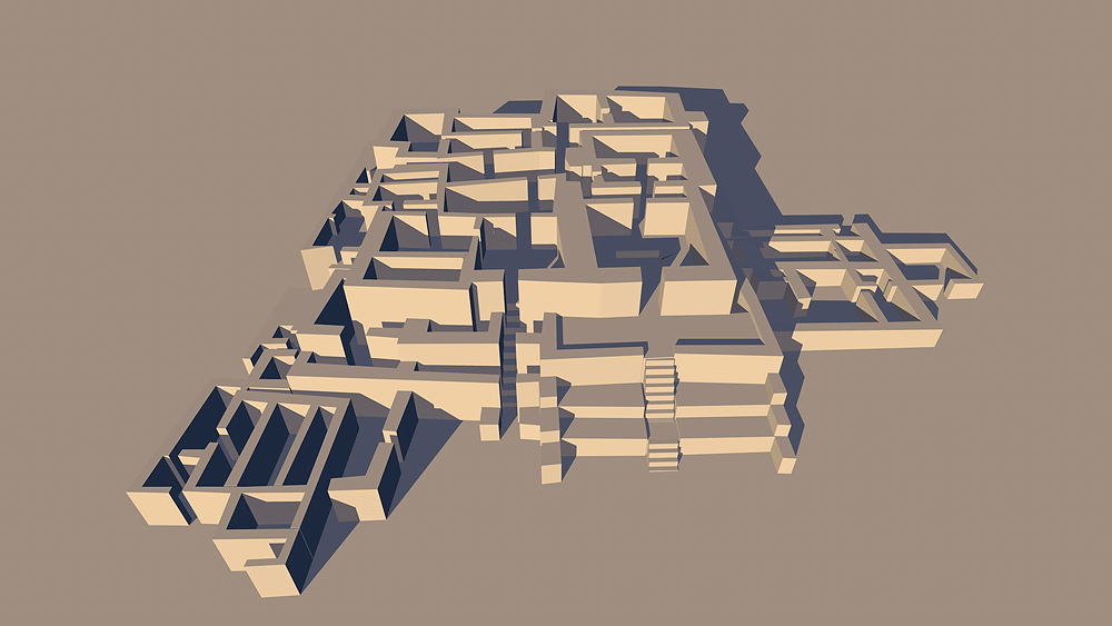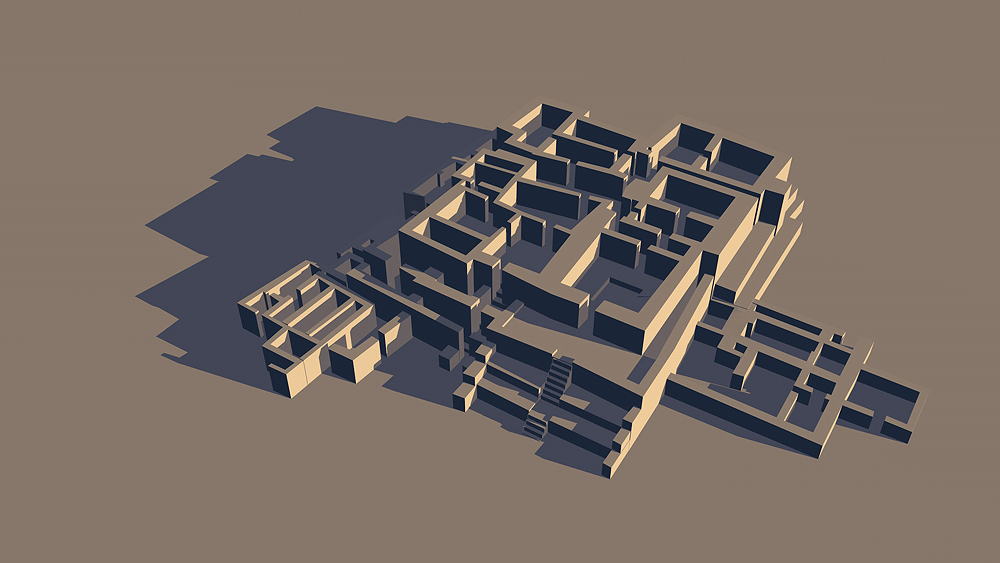 Pre-Inca Culture, Late Pre-ceramic (Pre-agriculture?), occupied 3500 B.C.E. to1800 B.C.E.; located close to the Pacific Coast, several kilometers north of Lima, Peru, in the Chilca (Chillón) Valley Elevation is c. 53 meters (173 feet) above sea level. Materials: stone and earth. . Data for CG model: |