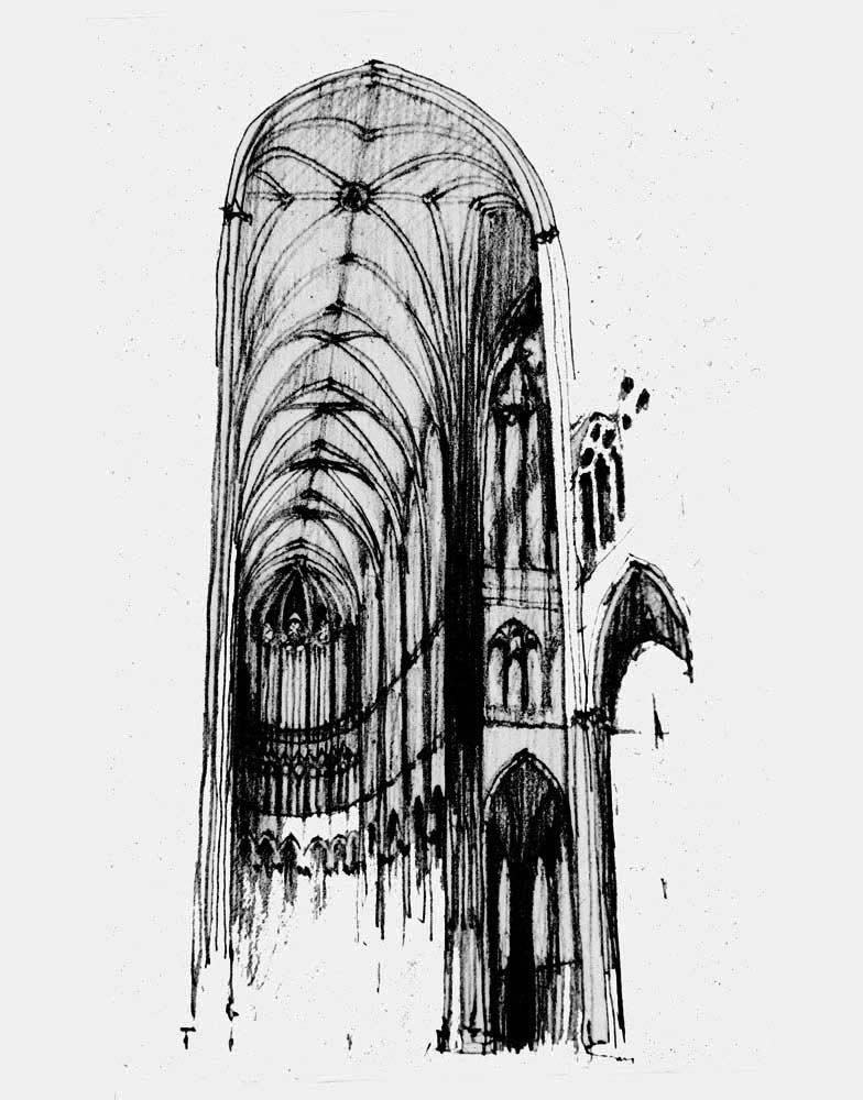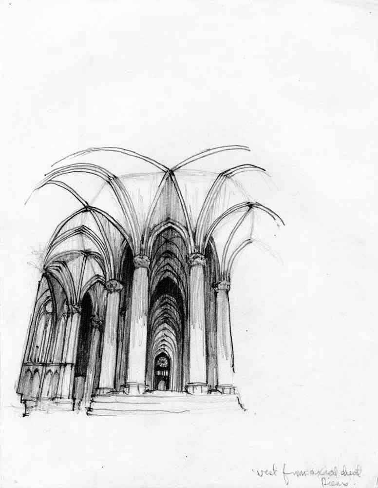 Amiens Cathedral, France, forced interior perspective, Summer 1965, #2 pencil on bond.