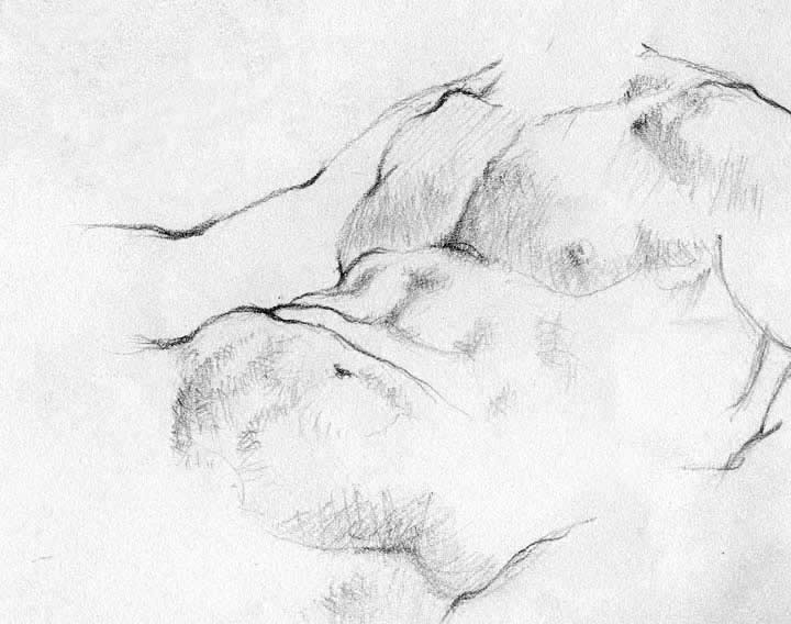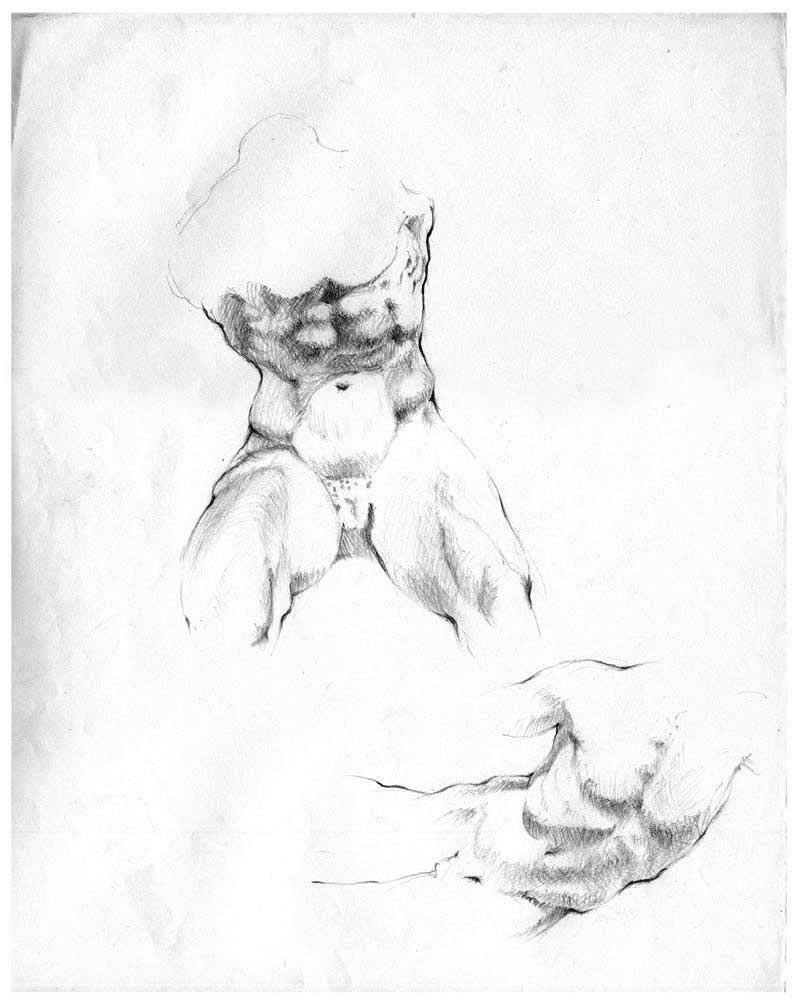 Elgin Marbles, Parthenon, Athens, Greece, plaster cast life study, 1966, #2 pencil on bond.