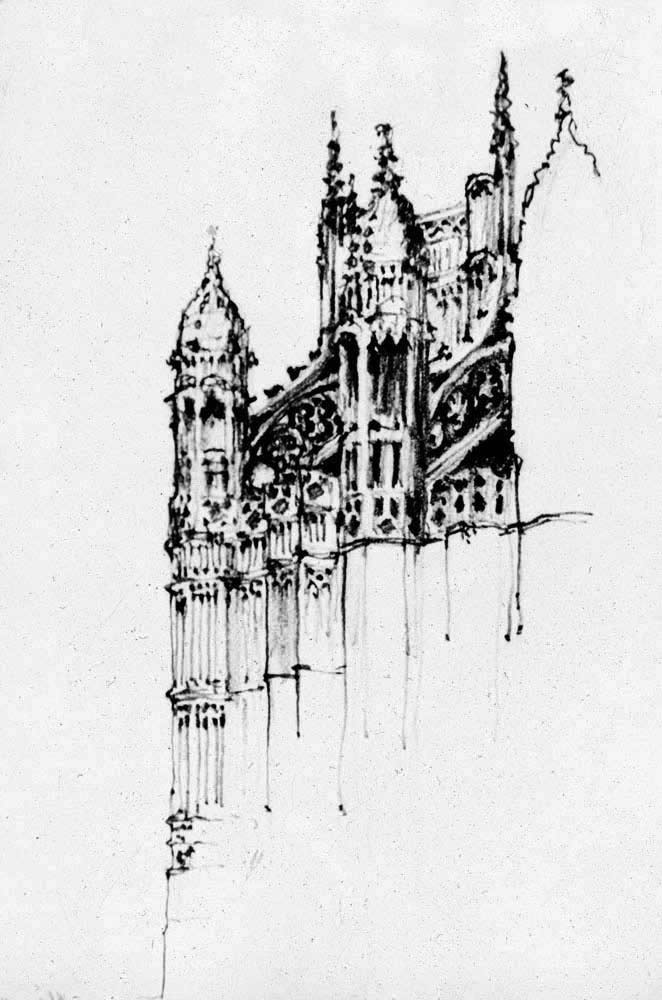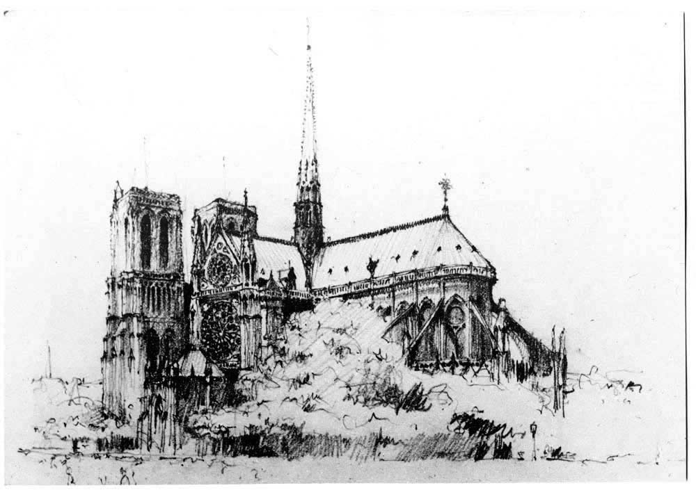 Notre Dame Cathedral, Paris, France, Summer, 1965, #2 pencil on bond.