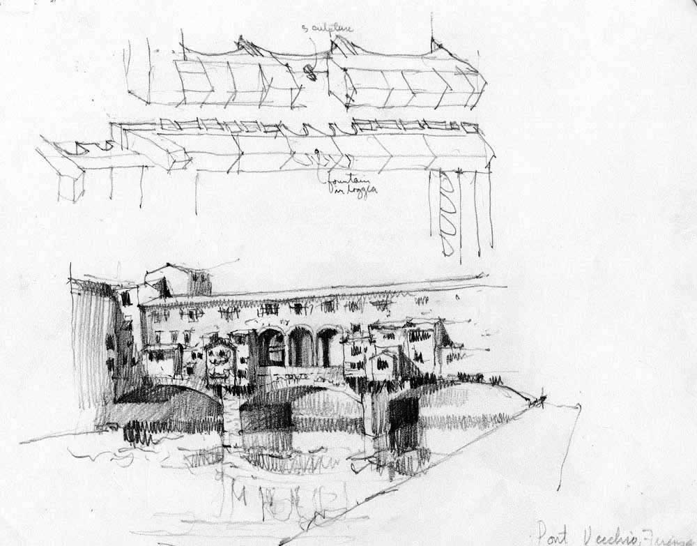 Ponte Vecchio, Florence, Italy, Summer, 1965, #2 pencil on bond.