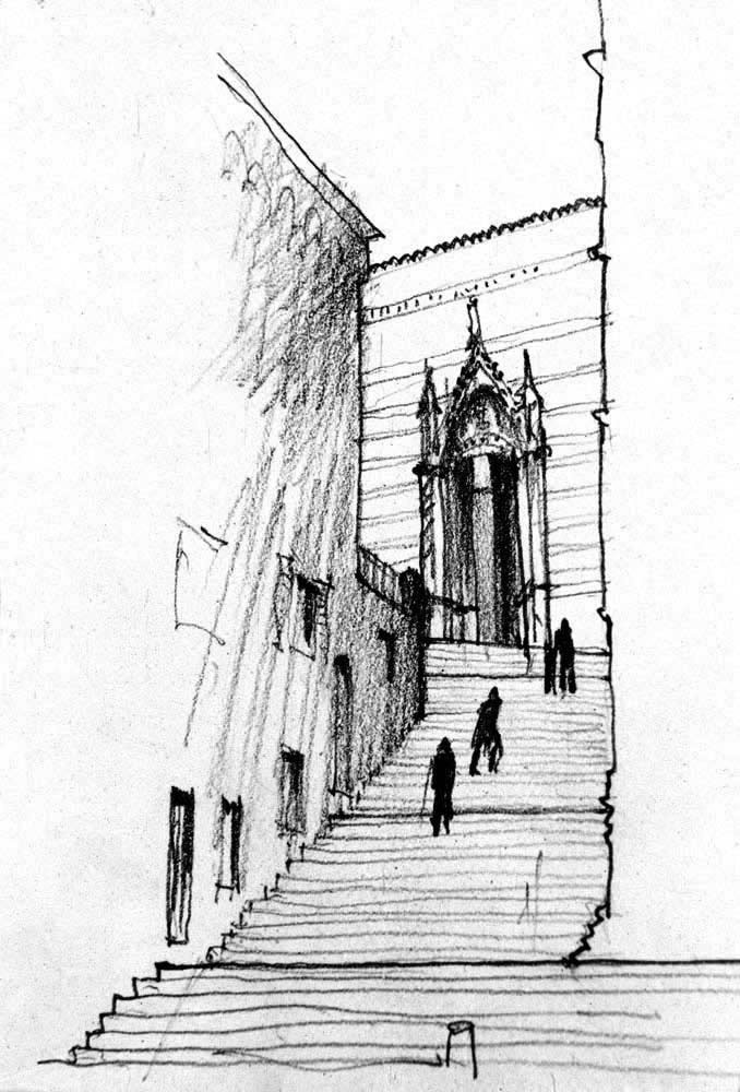 Steps behind Cathedral, Siena, Italy, Summer, 1965, #2 pencil on bond.