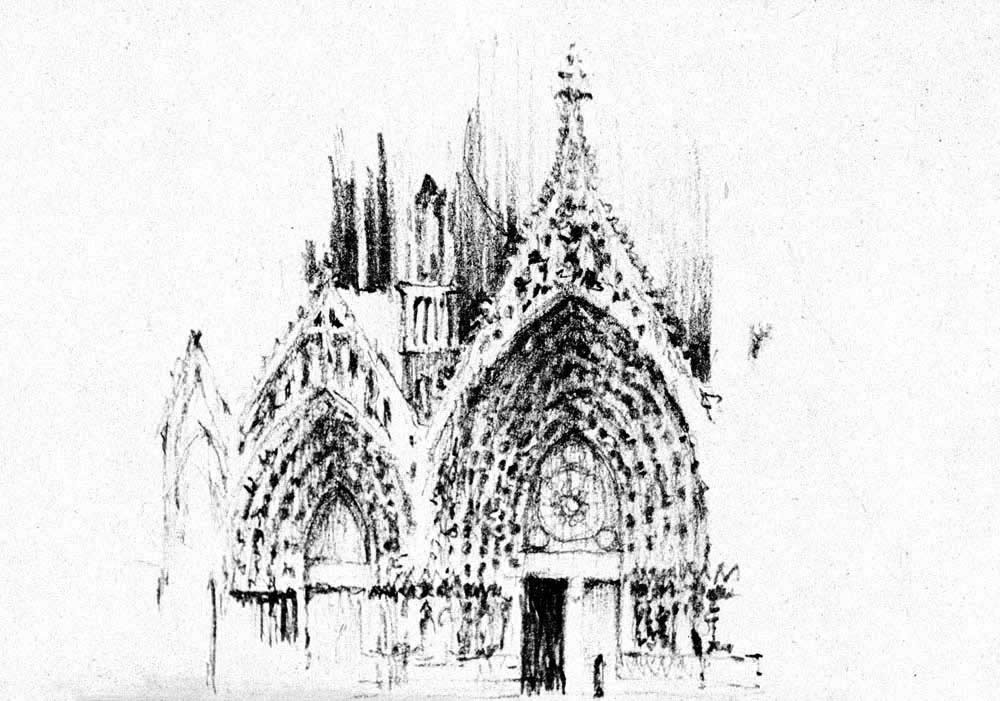 Cathedral of Reims, France, west facade study, Summer, 1965, #2 pencil on bond.