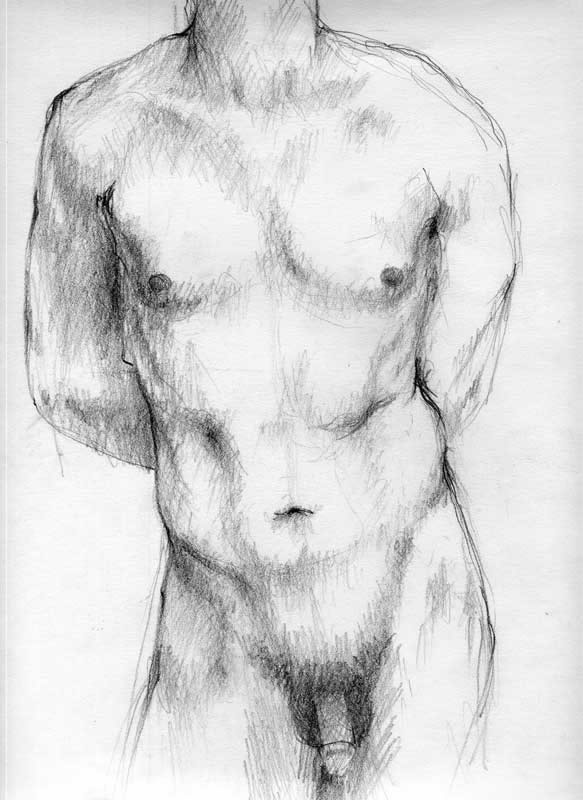 Michelangelo sculpture plaster cast life study, 1966. #2 pencil on bond.