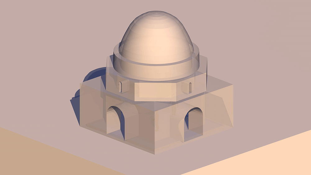 Indian and Persian Parthian Zoroastrianism place of Fire Ritual, was from the 9th century, B.C.E. an open air event; then c. 4th centure B.C.E were contained in a simple house-like structure, and later to be inside a domed structure as shown here; still in use.