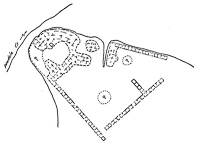 Above: Leslie Spier, American anthropologist, 1918 sketch of the Fourmile Ruin, reproduced from "Notes on Some Little Colorado Ruins", Anthropological Papers of the American Museum of Natural History, vol 18, pt 5.