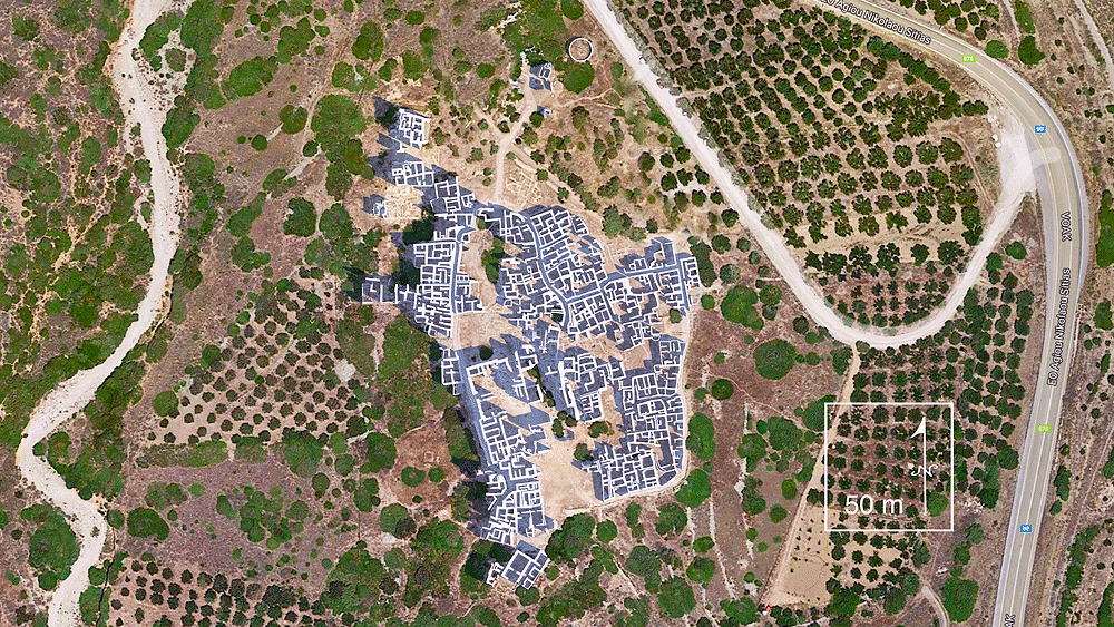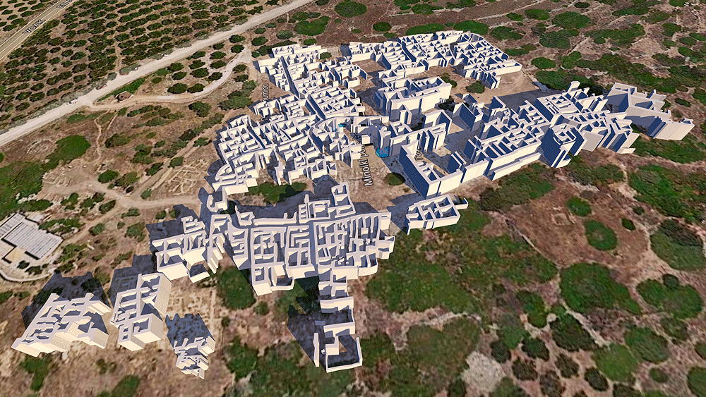 City of the MInoan Civilization, on the island of Crete in the eastern Mediteranean Sea, located c. 20 km east of Agios Nikolaos town. The original name of city is unknown. Gournia waa occupied from 3000 B.C.E. and abandoned iln 1200 B.C.E in the Post Palatial Minoan period, and was an important Minoan trading center, for Greek and Egyptian goods.