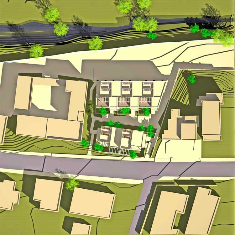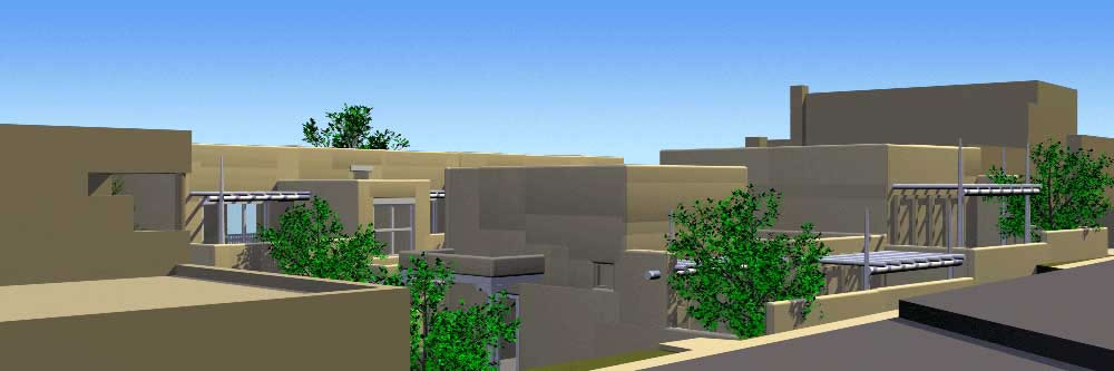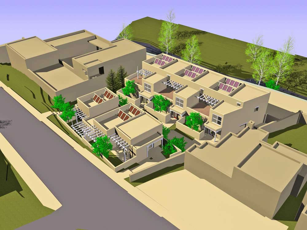 Greenworks Alto Street Design Competition, Santa Fe, New Mexico, 2009 From the COMPETITION WEB SITE: GreenWORKS challenged designers to: 1) Provide a site design that allows as many as six homes; 2) Determine a realistic development budget that addressed the required affordability program as well as the costs of using cost-effective, sustainable design and building methods; 3) Comply with a “green” building checklist that incorporated Enterprise Green Communities 4) Create a replicable development model to shape future land use policy in Santa Fe regarding infill projects and green-built projects; 5) Integrate the historic character of the neighborhood in the design; and 6) Incorporate community input into the design process.