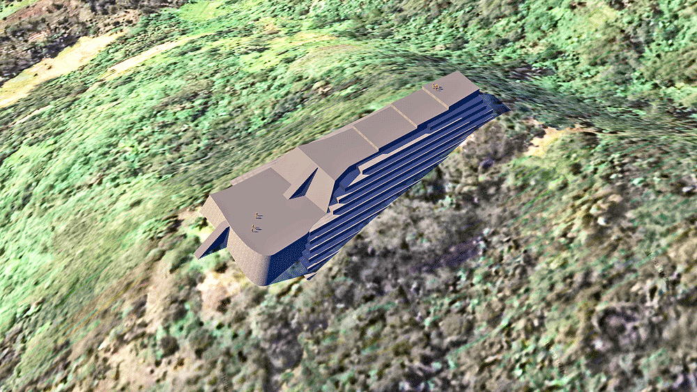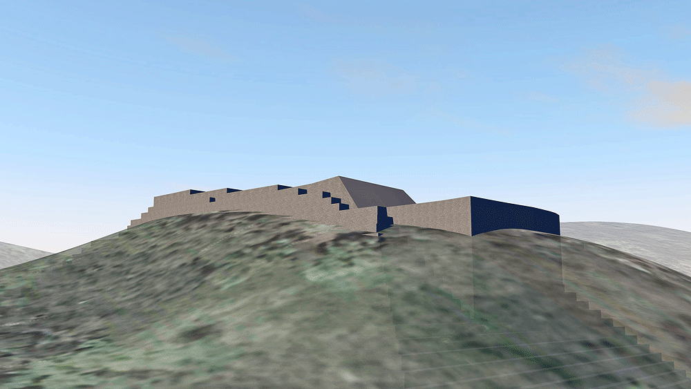 Megalithic Sundanese culture of West Java, Indonesia; located in Cianjur Regency 2950 feet (900 meters) above sea level. The site is a stepped pyramid about 360 ft high (110 meters) with the visible top five terraces visible today and most of the lower terraces covered by erosion and jungle. The pyramid layered terraces are constructed of stacked megalithic prismatic basalt columns. The research team led by Danny Hilman Natawidjaja, Phd. senior geologist with the Research Center for Geotechnology, Indonesian Institute of Sciences, using radiocarbon dating, ground-penetrating radar, seismic tomography and electrical resistivity, found that the monolithic stones had been placed at dates ranging from 12,000 to 24,000 years ago! The oldest stones were placed at depths of 90 feet (27.5 meters). This is therefore perhaps the oldest homo-sapiens archaeological architectural site in the world. The axis of the five top terraces is oriented to the peaks of the Gede-Pangrango volcanoes. Elevation is c. 945 meters (3100 feet) above sea level. Materials: stacked prismatic basalt columns. Data for CG model: |