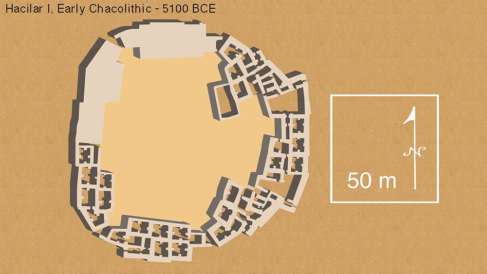 E. Hacilar IIA c. 5600 - c. 5250 BCE, construction of first phase of fortified enclosure, early chalcolithic period.