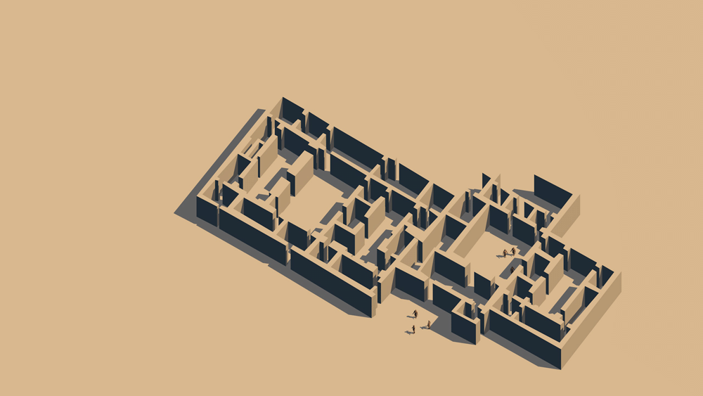 Two Houses at Jebel Aruda Sumerian Civilization, two houses constructed in the 2700 B.C.E, with courtyards, with bipartite, triparite, and cruciform plan forms; located on the East bank of the Assad River, east of Alleppo in present-day northern Syria. Materials: sun-dried earth (adobe) bricks covered with kiln-fired glased bricks laid in natural occurring bitumen, wood beams and columns. Source of data for this model: |