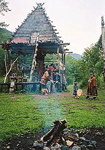 Intelmens Culture, oldest in Kamchatka Region, Russia; in use from most ancient times to present, the people live in raised pyramidal stilt houses in summer and earth pit lodges in winter, located in the Petropavlovsk-Kamchatsky (valleys of the Avacha and Kamchatka rivers).
