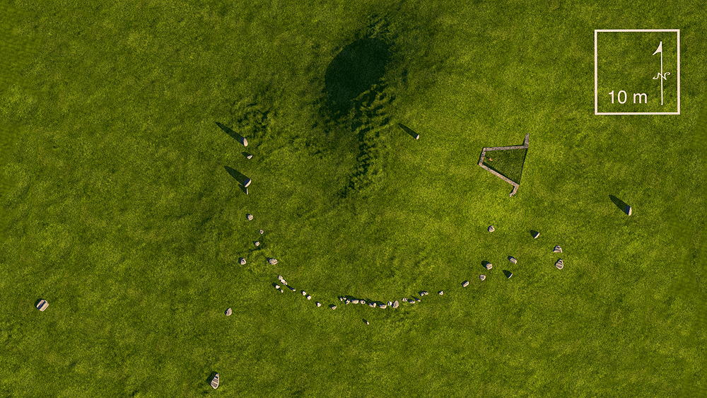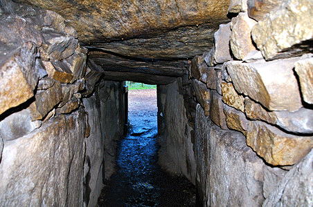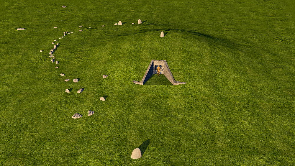 A passage mound of Neolithic culture, radio-carbon dated c. 5200 BCE. - 4360 BCE and in use for three thousand years. It is one of the earliest dated Megalithic sites in Europe. Located in the Carnac woods of Brittany, France. The entrance to the under mound chamber orients 33 degrees south of east, close to the midwinter sunrise. It was excavated in 1863 and again in 1925; the main passage is 6.5 metres long leading to a large chamber where artifacts were found from a succession of occupants, which included axes, pearls, arrow heads, and 147 variscite beads, which were found lying next to ceramics dating from the late Neolithic and the Bell Beaker period. Elevation is c.18 meters (58 feet) above sea level. Materials: Monolithic stone walls and capstones, with earth covering. Data for CG model: |