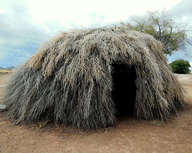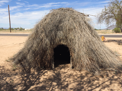 Pima and Papago cultures, traditional winter house, located in Arizona along the Salt and Gila Rivers, tributaries of the Colorado River. These houses are well known for their abiltiy to maintain a much cooler interior temperature in the extreme exterior desert heat.