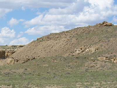 Chaco Culture, Chaco Canyon, New Mexico: Constructed c. 900 C.E.; located in Chaco Culture National Historic Park north of Una Vida Great House (see above). This may be the oldest "great" kiva in Chaco Canyon. Elevation is 1900 meters (6240 feet) above sea level. Materials: mortarless stone walls, wood log roof structure, with mud/clay roof. Data for CG model: |