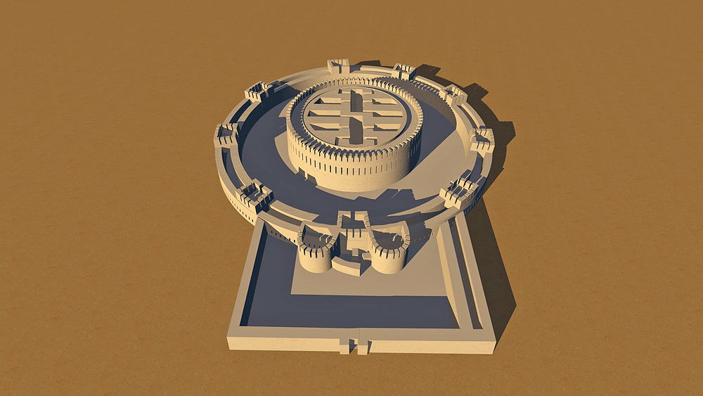 Khorezm Civilization, Chorasmian Dynasty, constructed c. 500 B.C.E. in the Republic of Karakalpaksta (in present-day Uzbekistan). Possible uses include fortified Zoroaastrian Monastery and Fire Altar.