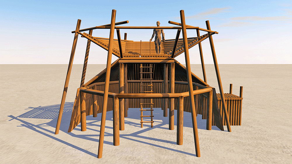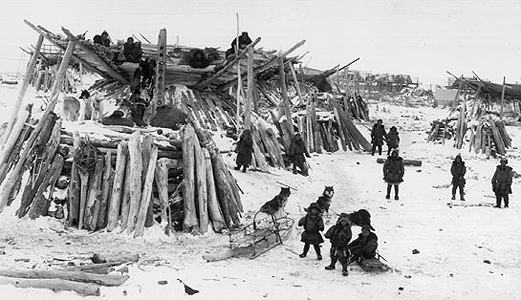 Koryak Culture , located in Kamchatka Krai, in the Russian Far East, along the coast of the Bering Staits. The Koryak are relatives of Chukchis Culture, as well as Haida, Gwaii, Tlingit, Tsimshian of the Alaska and Northwest Coast Amerindians; incorporates unique roof top nest or dish, used socially; house form originated in ancient times and is still in use today.