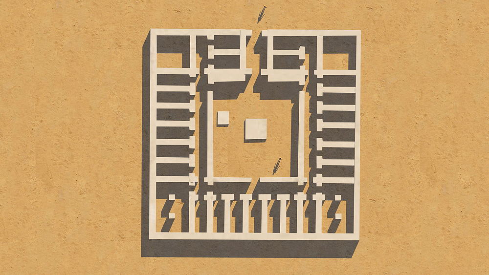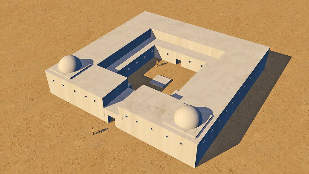 Bactrian culture (Afghanistan) from 1st Millenium, B.C.E., when Bactria was a province of the Achaemenid Empire. This palace's open central courtyard and the altar in the middle are similar to the plan prescribed for sacred and royal structures as provided in the Hindu Vāstu texts, confirming continuity with older ideas of different times and places.