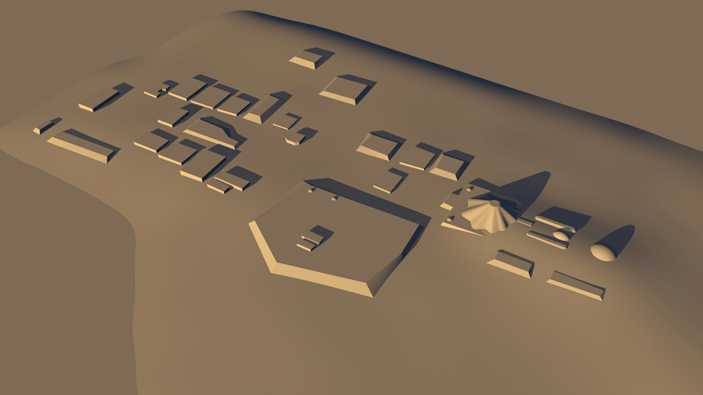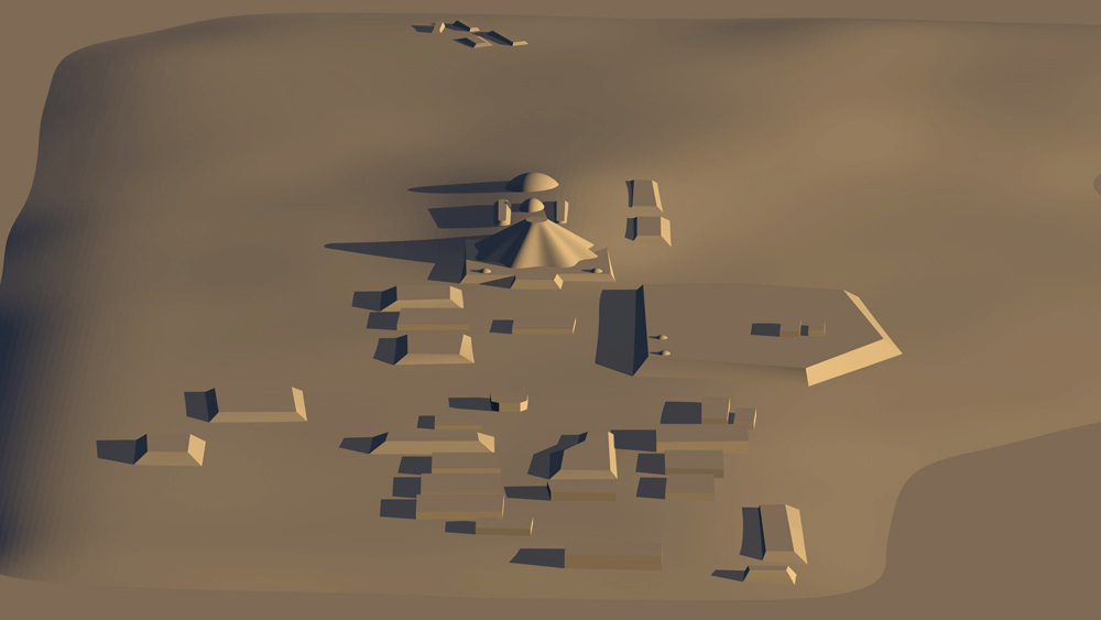 Pre-contact Olmec Civilization, occupied 900 B.C.E. to 400 B.C.E.; located in La Venta, Mexican state of Tobasco, near the Gulf of Mexico. Elevation is c. 15 meters (50 feet) above sea level. Materials: earth mounds from local sands and clays. Data for CG model: |