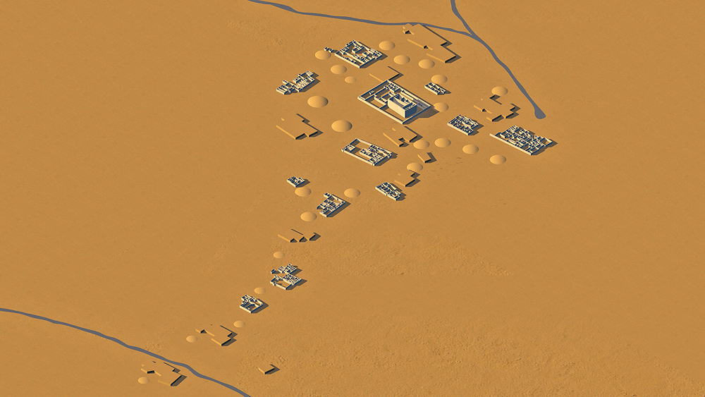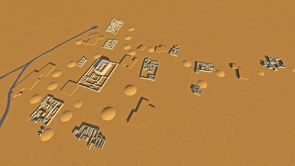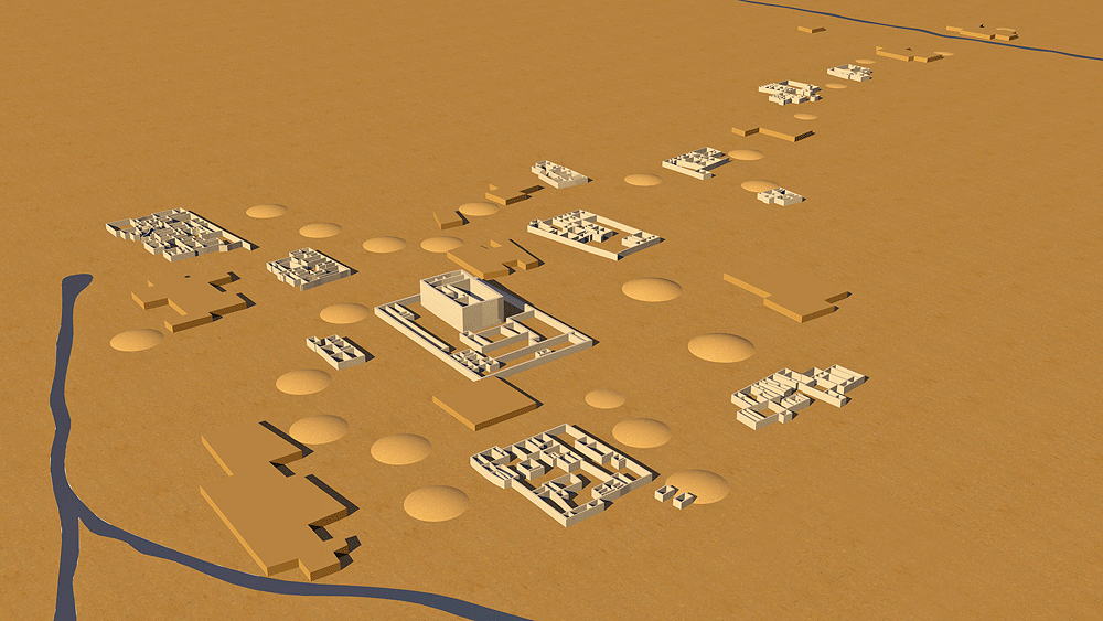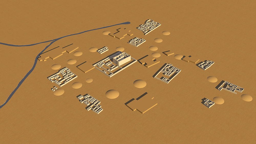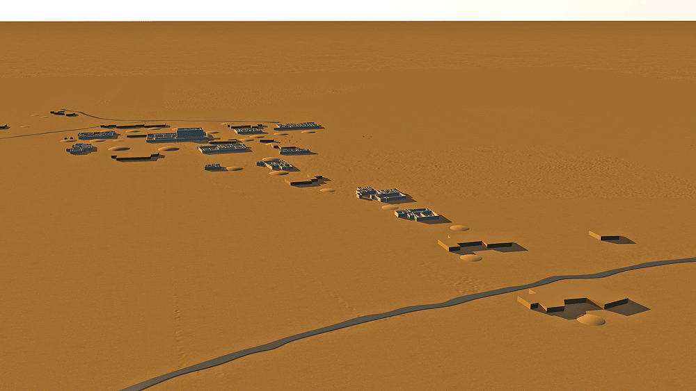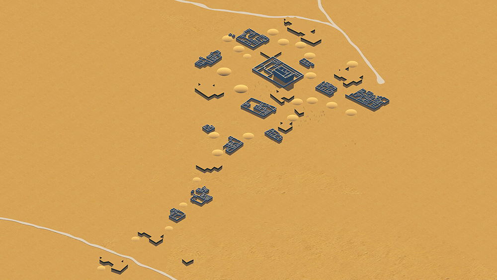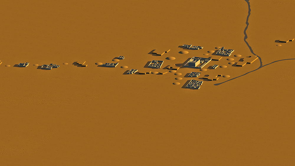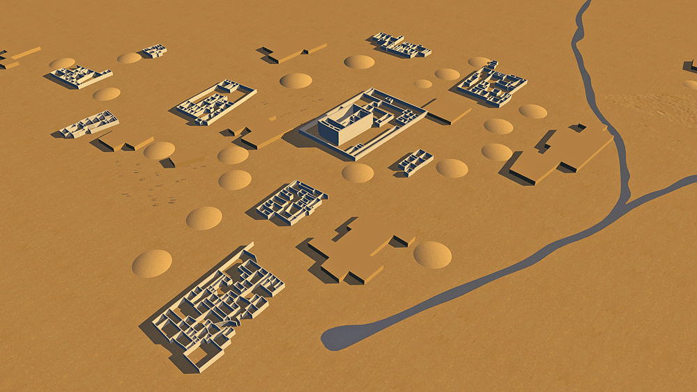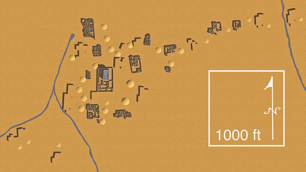 Ancestral Puebloans of the Hohokam Culture lived approximately from 200 to 1400 CE in the semiarid region of present-day central and southern Arizona, largely along the Gila and Salt rivers. The term Hohokam derives from the Pima, "those who have vanished." The culture has been defined by four developmental periods: Pioneer (200–775 ce), Colonial (775–975), Sedentary (975–1150), and Classic (from approximately 1150 to sometime between 1350 and 1450). The ruins of many Hohokam settlements are located in the Phoenix, Arizona vicinity. One of the largest of these ruins, Los Metros Pueblo ("City of the Dead"), is located about 6 miles south of Tempe, Arizona in the Salado (Salt) River valley, covering an area greater than 5.2 km2 (2 aquare miles ), bordering its ancient irrigation canal. At times, the settlement may have had as many as 13,000 inhabitants. Los Muertos was excavated during the 1887-88 Hemenway Southwestern Archaeological Expedition, led by Frank Hamilton Cushing. The expedition uncovered many large adobe mud communal houses, and beyond them, the remains of more sparsely-settled suburbs extending for 3.2 km (2 miles). The largest of these houses was bigger than Casa Grande (see pages ). This larger house was surrounded by smaller edifices, and the entire group was enclosed by an adobe wall, with thickness up to 2.2 m (7 ft), built for privacy of the occupantsas and protection against enemies. There were windows and portholes in the outer walls of the houses, but there were no doors, and entrance into the enclosure was via ladders.. Entrance into the enclosed houses was by ladders through rooftop smoke holes. During the Pioneer Period the Hohokam settled in agricultural villages consisting of widely scattered, individually built structures of wood, brush, and clay, each built over a shallow pit. The farmers cultivated Corn (maize), supplemented by wild beans and fruits and some hunting. During the following millennium the Hohokam's greatest achievement was the hydrological engineering of complex crop irrigation canal networks, the extent of which was unsurpassed in pre-Columbian North America. During the Hohokam Sedentary Period, villages continued to consist of collections of pit houses, surrounded by walls, and platform mounds made their first appearance. More extensive irrigation systems made possible the cultivation cotton for textiles. A major technological achievement was the Copper bells cast in wax molds was a major technological achievement. In the Classic Period the Hohokam culture was joined for several decade by the Salado tribe, a branch of the Chacoan Culture. The Salado introduced Pueblo architecture into Hohokam territory resulting in the emergence of great multiple-storied community houses with massive walls of adobe, along with the older, more easily constructed pit houses; some houses were also built on top of platform mounds. Drought and unpredictable precipitation resulted in the Hohokam abandonment of most of their settlements during the period between 1350 and 1450. The Pima and Tohono O'odham (Papago) of southern Arizona are thought to be the direct descendants of the Hohokam. Elevation: 366 m (1200 ft) above sea level Materials of Construction: Adobe mud walls, with roof support structure of small tree trunks spanned with mats of reeds and mud/clay roof topping. The clay plaster of the inner house walls was burnished to a high gloss. Data for the CG models: |