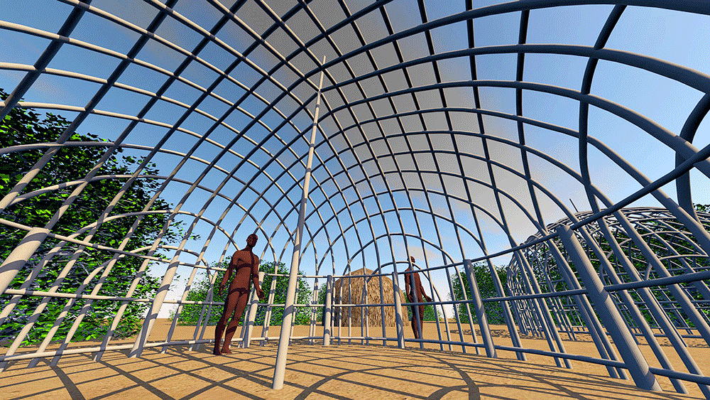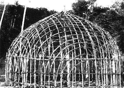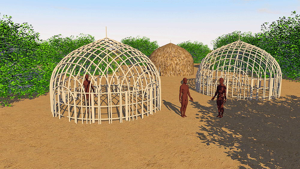 Indigenous Australian Torres Strait Islander people are hunter-fisher-gatherers and skilled seafarers, speaking theTrans–New Guinea language group--a part of the Austronesian Language group. They are aboriginal to Australia but distinctfrom Australean Aborigine peoples. Paul Memmott describes the Meriam people's house architecture: they constructed pointed domes until the end of the 19th century with the arrival of missionaries. The typical dome is 5.7 meters in diameter and 3.75 meter high. A dome could accommodate a nuclear or extended family. Materials consist of bamboo canes arranged in traverse arcs and tied together, a cladding of blade grass fastened with split bamboo lathers. There is a central post, essential for the construction of the dome. Data for CG model: |