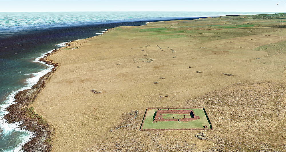 Hawaiian Islands Culture, walled type heiau (Temple) located in Pu'uepa, North District of the Big Island of Hawai'i. Originally built in c. 460 C.E. and later rebullt c. 1150 C.E. by the Tahitian Priest, Pa'ao, who officiated in this temple and who resided in nearby Pa'uepa (birthplace of King Kamehameha I), The lava stones of this construction were passed from the valley of Pololu, nine miles distant, by a file of workmen standing in battle array the whole distance, each stone blessed and placed into the construction. The bounding walls of the temple were 817 feet long and 8 feet thick. The inner walls were 25 feet hight. It is the largest heiau on the Island of Hawai'i and the second temple built by Pa'ao. Elevation is c. 27 meters (89 feet) above sea level. Materials of construction: Lava stones. Data for CG model: |