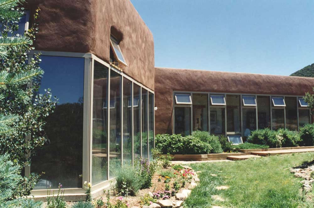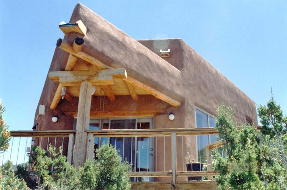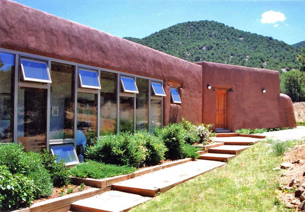 Passive Solar Pumice-crete house in the foothills of the Sangre de Cristo Mountains overlooking the town of Taos, New Mexico.. |