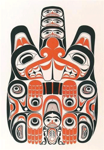 Kunghit-Haida Culture, Coastal British Columbia; from ancient times to present. Elevation is close to sea level on the Pacific coast. Materials: wood. Data for this model from: |