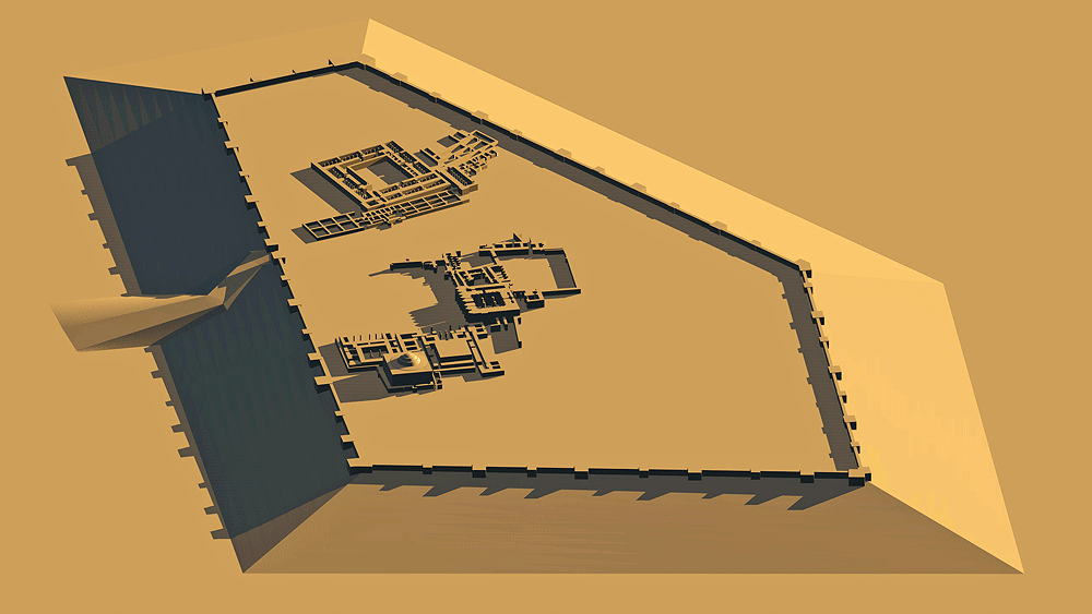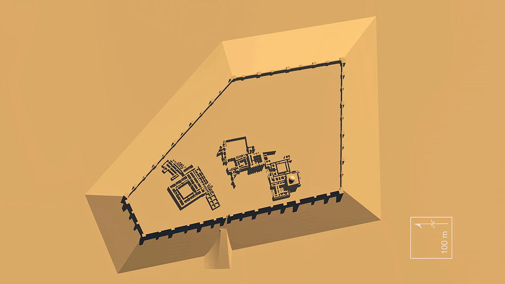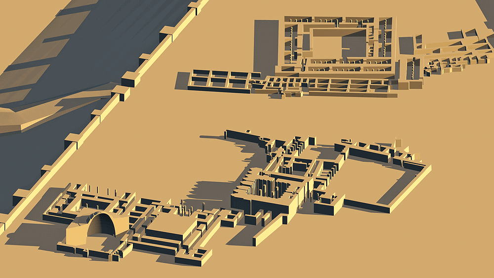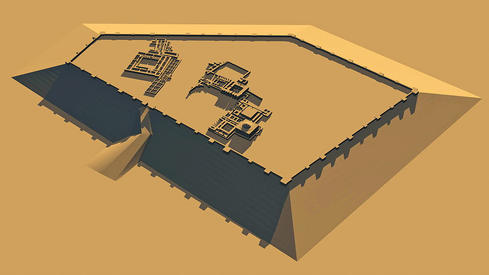 Parthian Culture (Early Persia, now Turkmenistan), built between 250 B.C.E. to 211 B.C.E., used by Parthian kings as the fortified government center, located near modern-day Ashgabat, Turkmenistan. Elevation is c. 341 meters (1119 feet) above sea level. Materials: adobe bricks covered with baked bricks laid in natural occurring bitumen; wood beams and columns. Data for CG model: |