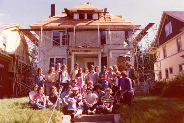 The great GURU visited us. The British economist and author of SMALL IS BEAUTIFUL, E.F. (Fritz) Schumacher, discusses the model of Ouroboros East with Dennis Holloway, as Minnegasco officials listen. (For information on Fritz Schumacher, see: http://en.wikipedia.org/wiki/E._F._Schumacher)