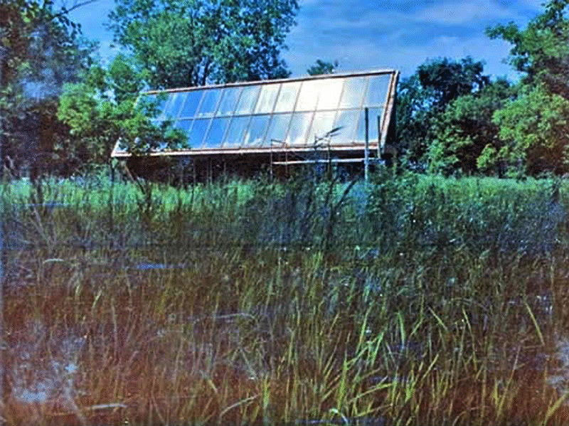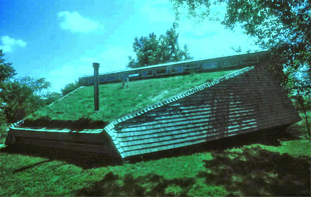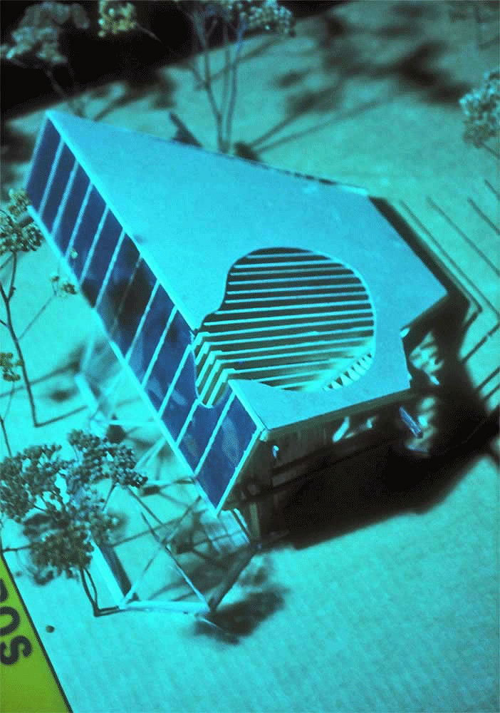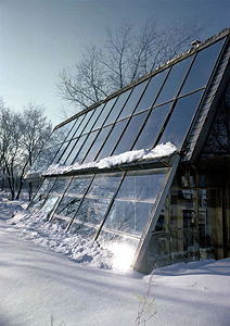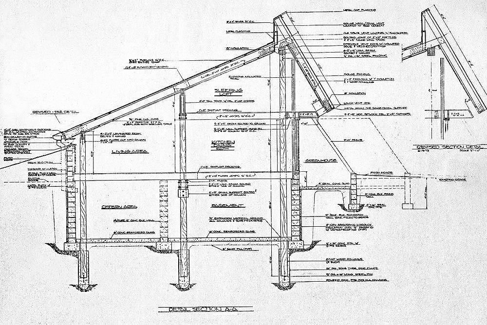 The most admired design featured a trapezoidal plan, with the widest side south-facing to optimize solar energy absorption, and to reduce surface area exprosure to the cold north. A sod roof and greenhouse for food production was integral to the proposal. The design specified buffering earth berms on the north, east and west sides of the house. An "active solar collector system" was proposed for the south-facing surfaces.