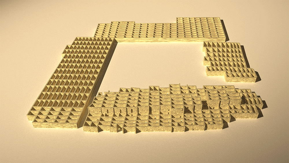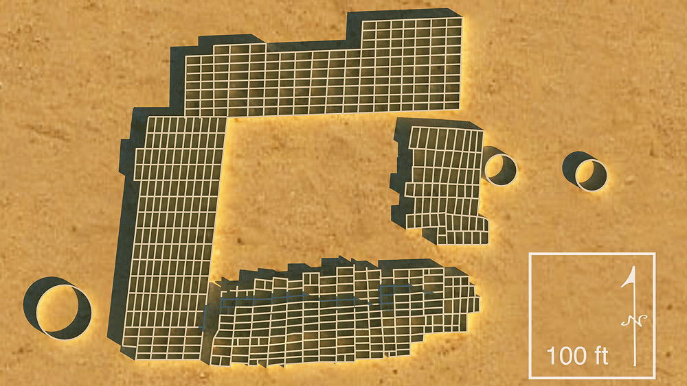 The mesa top pueblo and cliff cave below the mesa were ccupied in the 1200s C.E. and abandoned by about 1600 C.E. Only the mesatop "community house" is shown in this reconstruction.