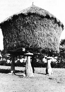 Persian Culture; from ancient times; in the rice growing areas of Gilan and Mazandaran, rice farmers stack unthreshed harvest high and dry on ricks which are supported by four or more pillars. The pillars are connected by wooden beams. Round wooden disks near the pillar tops, below the beams, prevent rodents from getting at the rice. (See Atoni, Iberian, and Nigerian Granaries elsewhere in this website). Elevation is c. 70 meters (230 feet) above sea level. Material: wood or stone pillars and wood beams. Data for CG model: |