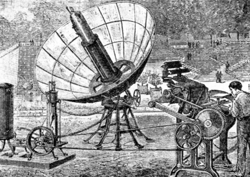 Abel Pifre (1852-1928), a French engineer, developed the first solar-powered printing press in 1878. The solar heated boiler capacity was 11 gallons, and the focusing mirror was 11.5 feet in diameter. The press was run in the afternoon sunlight, and even under semi-cloudy conditions printed five hundred copies per hour a journal appropriately named Soleil-Journal.