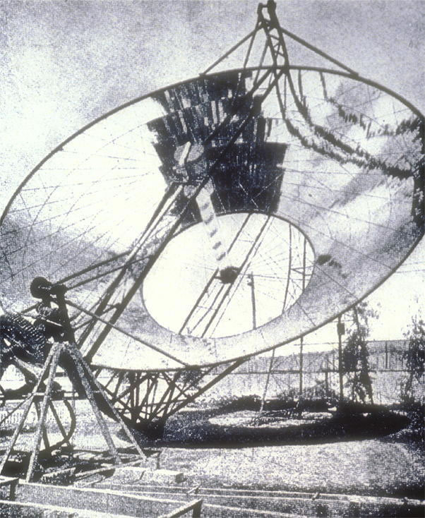 Using parabolic mirrorw, a solar-powered trumpet performed in a Belgian rock music festival in the 1960s.