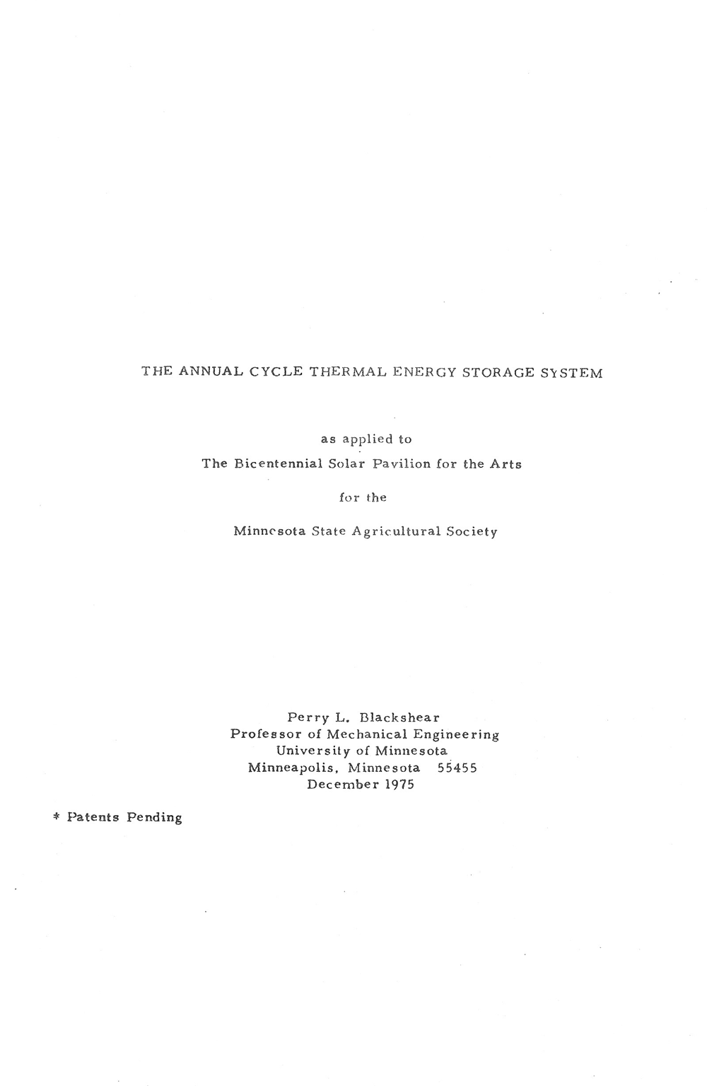 REPORT ON PROPOSED ANNUAL CYCLE THERMAL ENERGY STORAGE SYSTEM