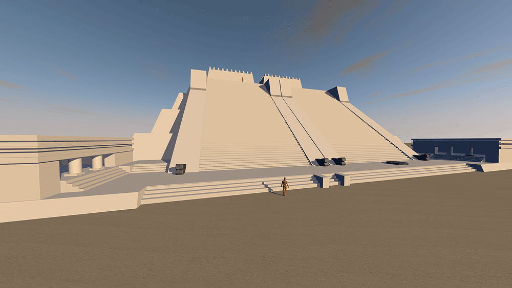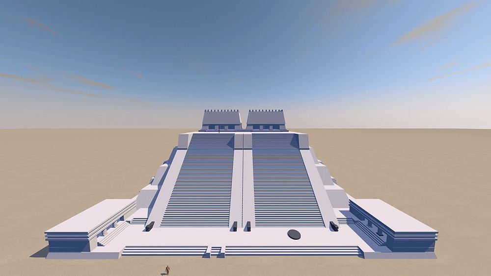 Aztec Civilization, one of the major temples of the Aztecs, begun in 1325 C.E.; located in the Aztec capital, Tenochtitlan, in what is contemporary Mexico City, Mexico. The Temple was constructed in seven sucessive layers resulting in the form presented here. Temples devoted to the two gods, Huitzilopochtli and Tlaloc, crowned the top platform. The Great Temple was destroyed by the Spanish in 1521 to make space for a new cathedral.