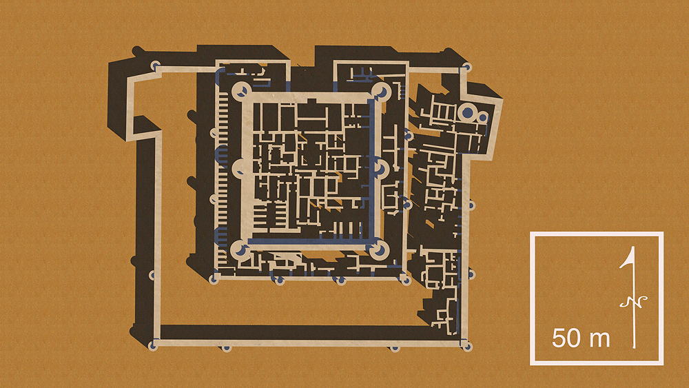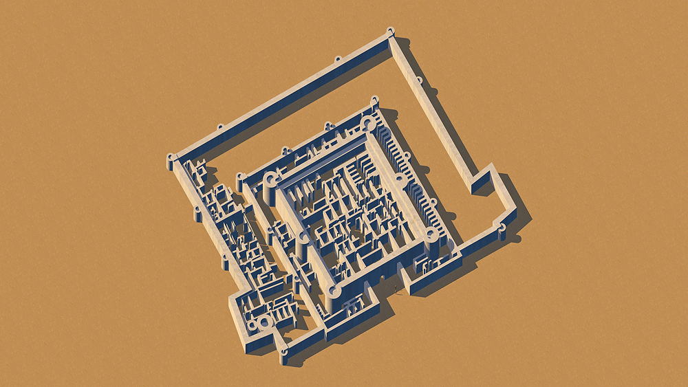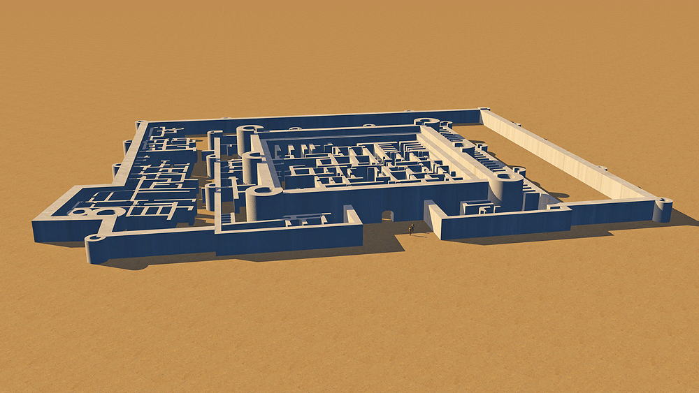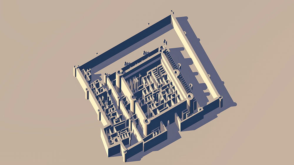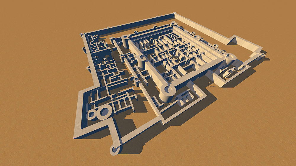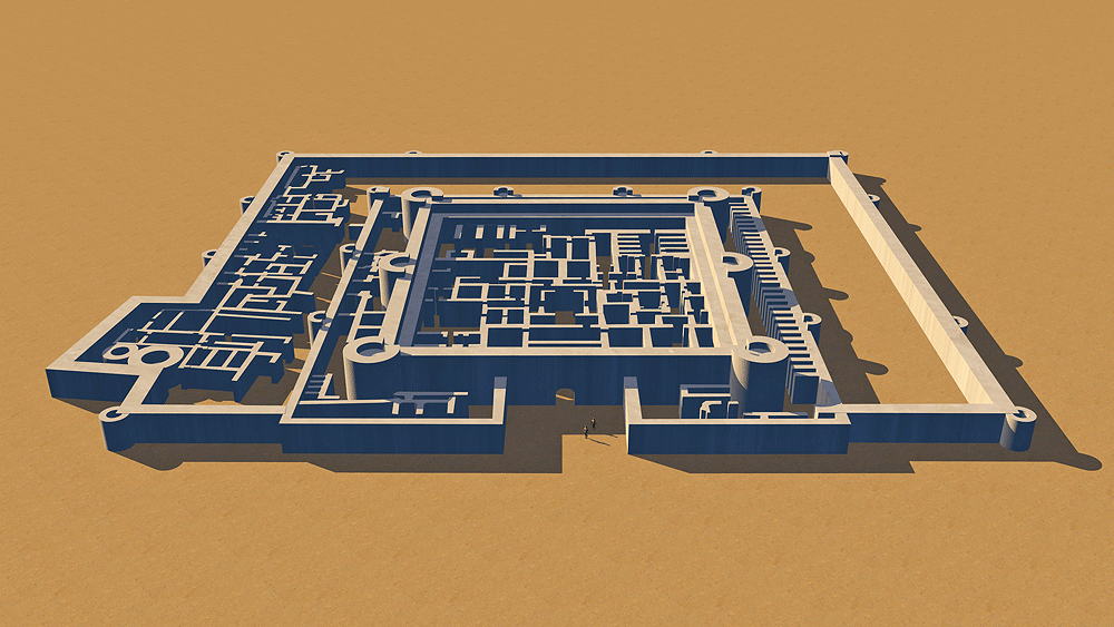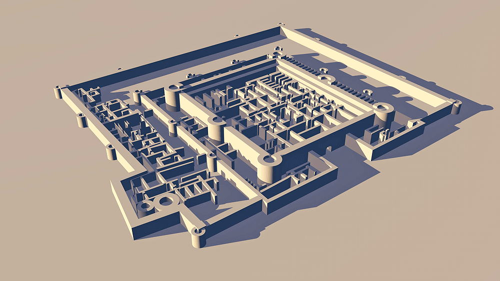 Oxus Civilization, (Bactria-Margiana Archaeological Complex, BMAC) ca. 2400–1900 B.C.E.; counterparts of the Indo-Iranian Aryan civilization, from which the Rgveda tradition could have originated before spreading into the Indian subcontinent. The Oxus sites in this region were discovered in the 1970s by Soviet Union archaeologists and remained unknown to the West until after the fall of the USSR. Togolok Temple is an archaeological site in the Murghab Delta, Turkmenistan, located about 10–15 km south of Gonur (or about 40 km north of Mary, Turkmenistan). Elevation is c. 194 meters (635 feet) above sea level. Materials: rectangular mud bricks, 44 x 24 x 12 cm. Data for CG model: |