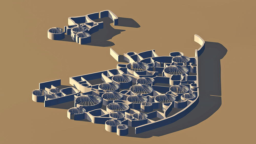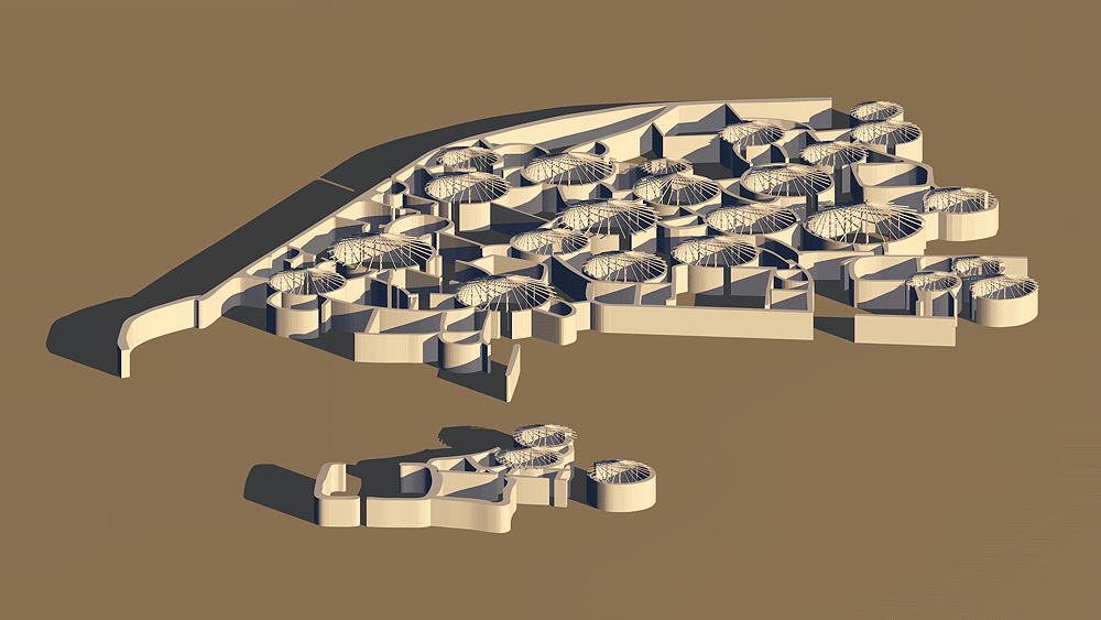 Pre-Inca Culture, occupied from 380 B.C.E. to 200 C.E., Antofagasta Region of Chile near San Pedro De Atacama. Elevation is c. 2438 meters (8000 feet) above sea level. Materials: adobe walls; wood roof structure supporting adobe roof on brush. Data for CG model:
