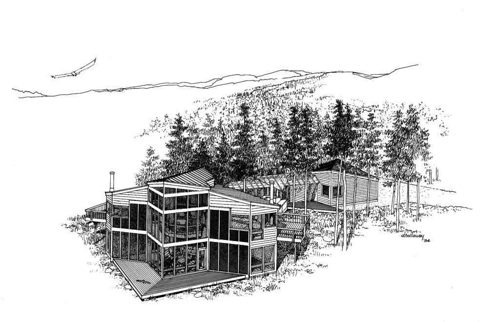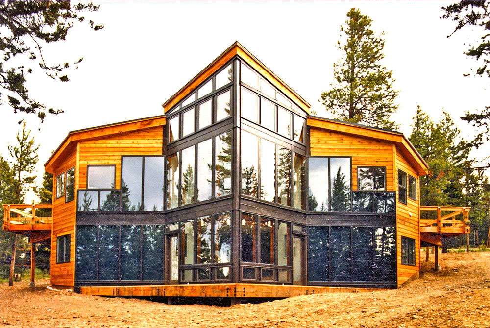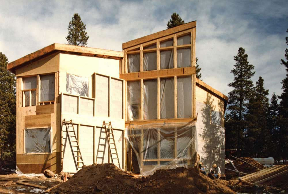 Ungar Residence, Winter Park, Colorado, 1984 A passive solar house in the Rocky Mountains, featuring non-vented Trombe walls and direct-solar-gain fenestraion and tower sunspace. Energy performance of the design is similar to that of the Champion passive solar house. |