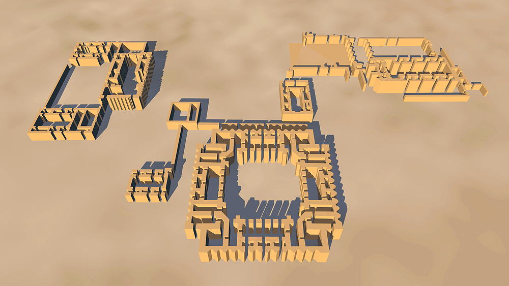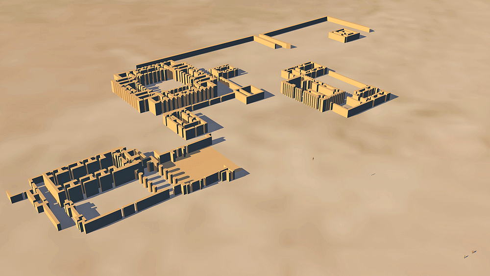 Sumerian and, later, Babylonian Civilization; was the largest city in Mesopotamia (100 hectares), construction began between 4000 BCE - 3000 BCE and came to an end during the Sassanian period as late as 633 CE; located east of the present-day Euphrates River, 30 kilometers east of modern As-Samawah, Al-Muthanna, in the present city of Warka, Iraq. The earliest known written script was found in the ruins of the city's Eanna Precinct, which was home to Gilgamesh, who ruled as king c. 2700 B.C.E. Elevation is 16 meters (52 feet) above sea level. Data for this CG model: |