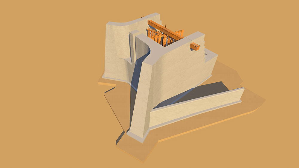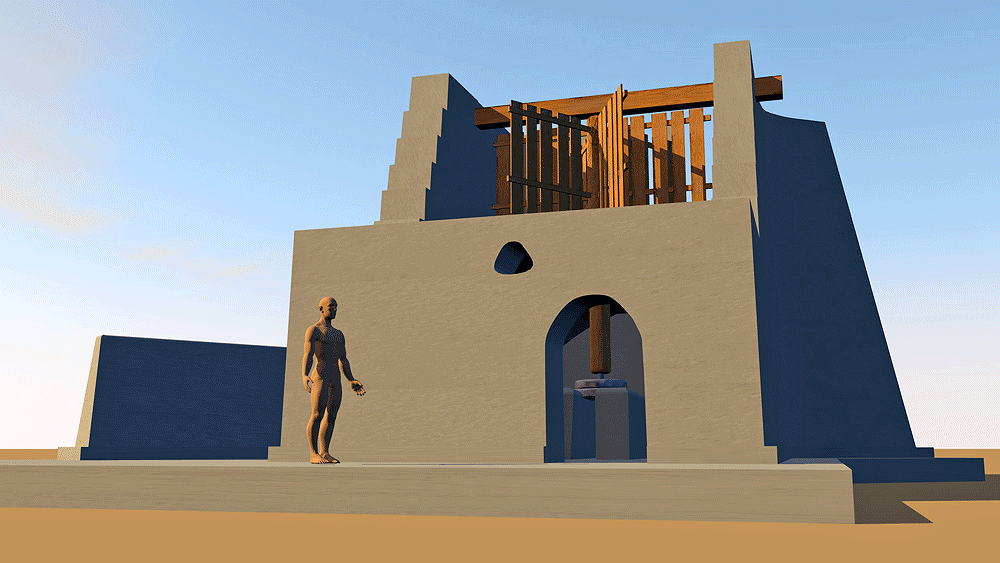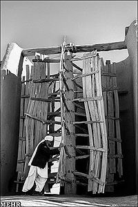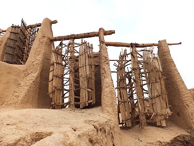 Material: Unfired adobe brick wall, mud brick vault, wooden and reed mat rotor.