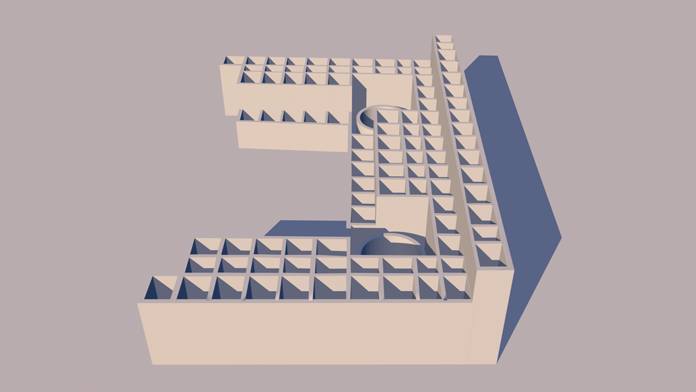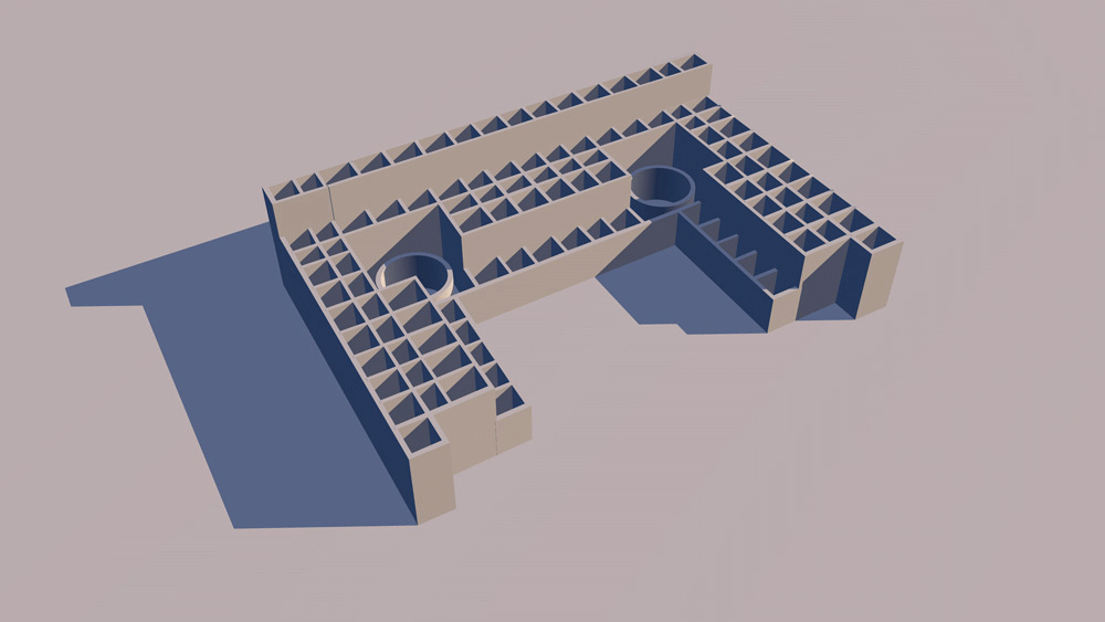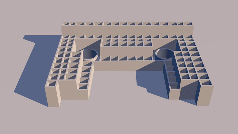 Chaco Culture, Chaco Canyon, New Mexico; located in Chaco Culture National Historic Park, occupied 1110 C.E. to c. 1240 C.E.. This is the most symmetrical building in the entire Ancestral Puebloan world. Elevation is 1900 meters (6240 feet) above sea level. Materials: mortarless stone walls, wood log roof structure, with mud/clay roof. Data for CG model: |