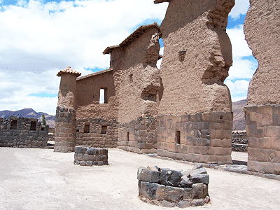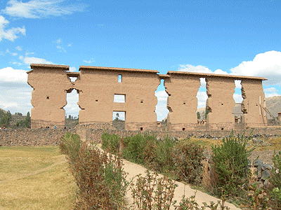 Inca Civilization, constructed in c. 1420 C.E. and destroyed by the Spanish in 1540 C.E.; located in Peru, in Cusco Region, Canchis Province, San Pedro District, near Raqch'i. It is considered to be the largest single Inca building.